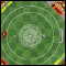 Description: Zoom in or out and locate the small green yellow blue and red men that are in the background.